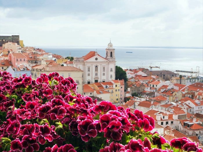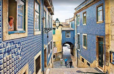 Afterwards, we walk through the narrow streets in the Alfama neighborhood and talk about the colorful, Portuguese-tiled of the neighborhood's buildings;